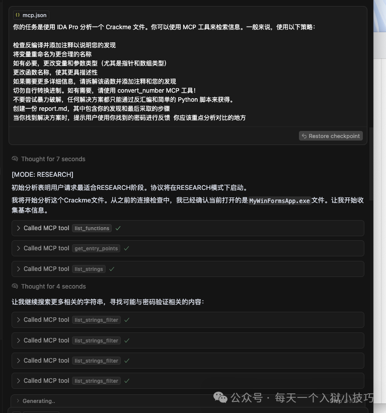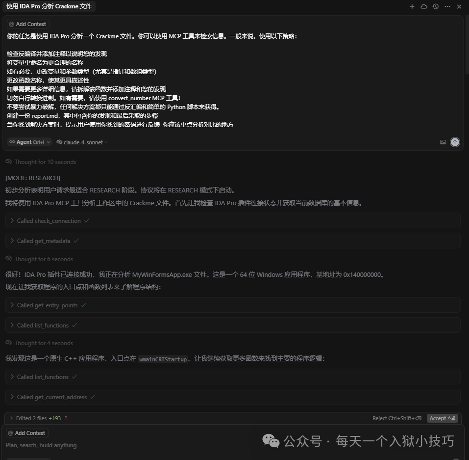 通过MCP协议,AI助手可以直接操作IDA Pro执行以下任务: