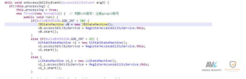 界面启动之后,RegisterAccessbilityService通过监听包名“com.google.android.gsf.login”触发注册界面启动事件:
