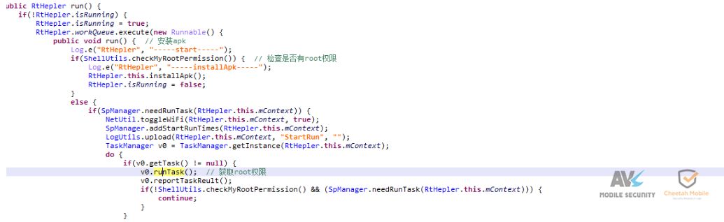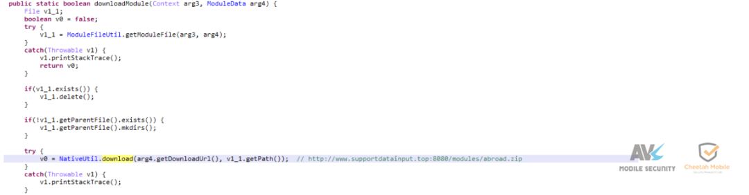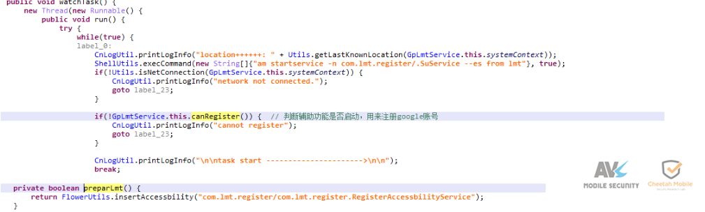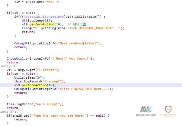 五、总结 该病毒首先通过联网获取root方案,下载并执行提权模块,随后释放两个恶意程序,拷贝到系统目录以防被卸载。恶意程序通过辅助功能模拟点击注册google账号,并且通过修改系统函数返回值(忽略按键、锁屏无效等),防止其影响注册流程,以提高注册成功率。同时还会下载恶意代码,收集用户账号、authtoken(授权令牌)、固件、gcm、GooglePlay等信息,可能用于配合自动注册相关。 近年来,各种黑色产业链逐步形成,黑产的攻击手段也越来越专业化,会利用一系列手段保护自己,对此安全厂商应该持续关注并提升对抗能力,为移动安全保驾护航。 本文转自“安天移动安全”公众号,转载请注明出处。 |