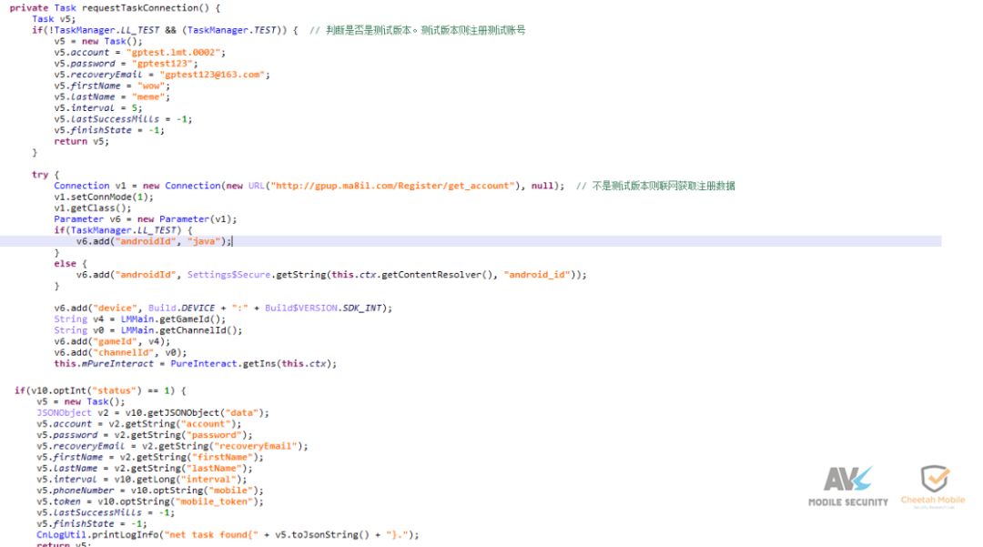 判断是否是测试版本,测试版本则注册测试账号,不是测试版本则联网获取注册数据:
