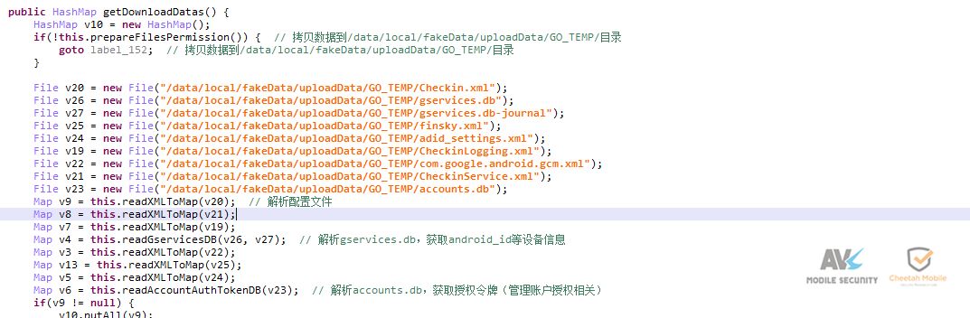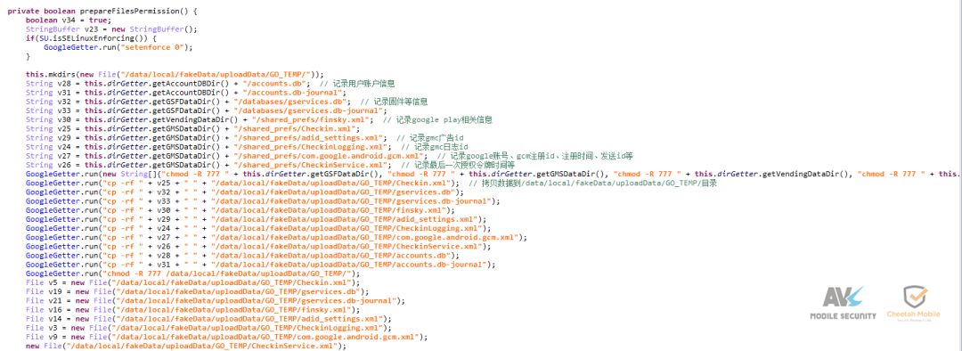 从/data/system/users/0、/data/data/com.google.android.gms、 /data/data/com.google.android.gsf、/data/data/com.android.vending这4个目录拷贝数据库或配置文件,主要从这些文件获取用户账号、authtoken(授权令牌)、gcm、固件、GooglePlay等相关信息: