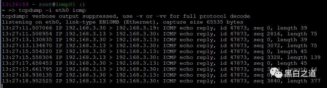 在lnmp01机器上观察icmp数据