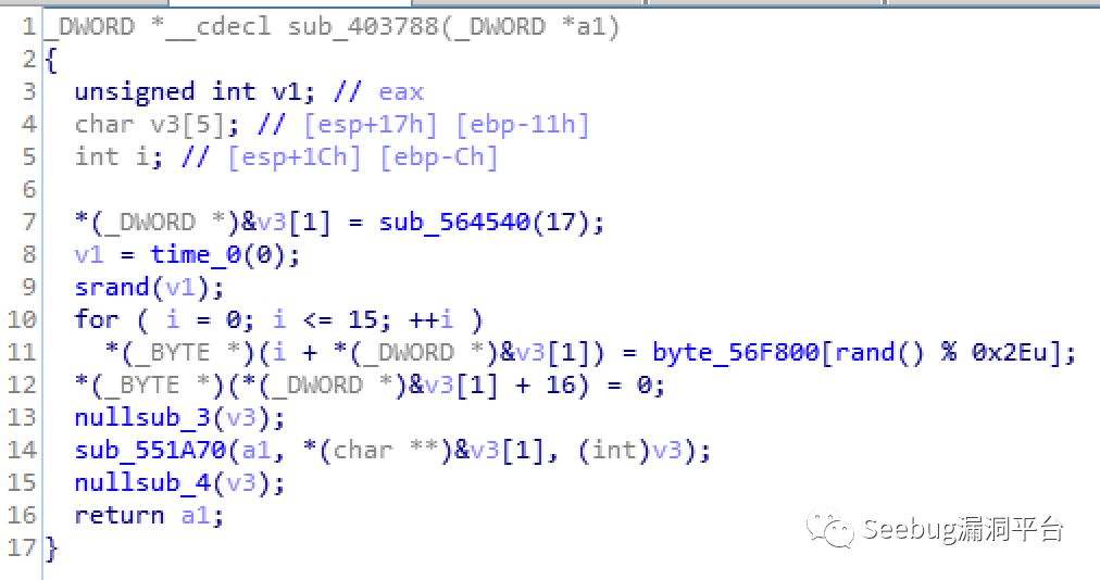 加密模块中使用该函数为每个用户生成一个标识,用于区分用户;其仍然使用随机数从预设的字符串序列中随机选出字符,最后组成一个长度为 16 字节的 session,并存入到C:\\Windows\\Temp\\Ssession 文件下。