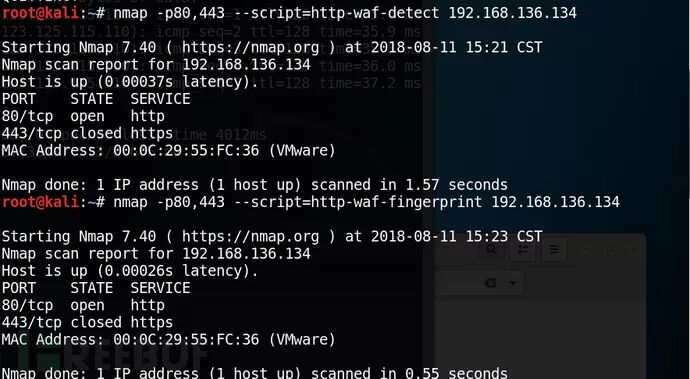Nmap探测WAF有两种脚本,一种是http-waf-detect,一种是http-waf-fingerprint。