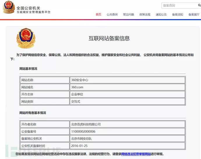 下图是通过全国公安机关互联网安全管理服务平台查询公安部备案信息
