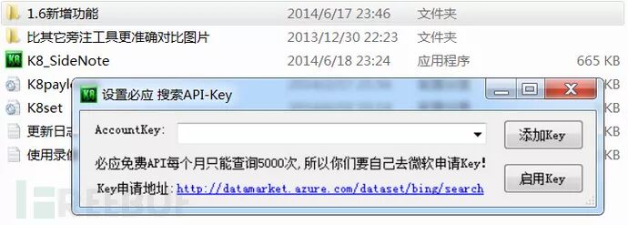 想要使用这款工具还需要申请必应API,我手工测试时是打不开KEY申请地址的,可能已经不行了,因此还是推荐使用在线工具查询吧。