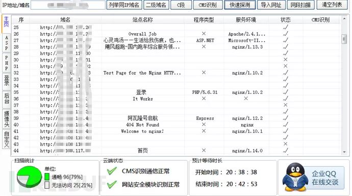 这是一款国人写的扫描器,不得不说这款扫描器误报率是真的高。通过一些实战我发现这款扫描器不错的是C端扫描,可以获取网站标题、服务环境、程序类型