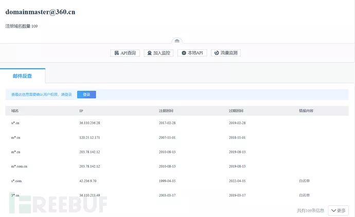 图是反查邮箱的效果,微步需要登录才可以查看更多的信息。