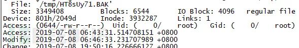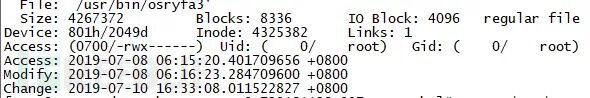 2.3 病毒文件的清理首先,使用stat查看上面两个进程的修改时间,大约在7月8号早上6点多,而ssh系统最早爆破时间是7月6号16:41。