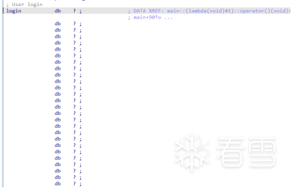 接着看主函数25行的User::read_name,读取输入的0x49个字符,然后赋值给bss段的login+1处,login是一个全局User结构体,实现了名字读入。