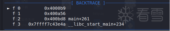 此外题目中有现成后门。 因此这题的漏洞基本算是送到脸上了,但对汇编不了解的我硬是做了两天。 利用思路经过上面的初步分析,我们知道程序在password_checker中调用一个二级指针失败而段错误终止,考虑到canary的存在,srop不可能短期实现。即使我们无法利用这个二级指针getshell,它的存在也会让程序终止。由于存在后门函数,只要能改变这个二级指针,这题就getshell了。调试过程在网上多位师傅博客的参考下,我学会了用汇编溯源的技巧。c语言代码虽然易懂,但最硬核与直接的还是汇编。调试前我们要明白一个概念:对于一个函数内调用的函数,他们的栈是平行的:由于push rbp; mov rbp, rsp;sub rsp, x子函数的ebp相同,esp根据位移不同而不同。 因此,子函数的栈空间会存在反复利用的情况;如果父函数中出现了子函数栈空间的指针变量,下一次调用子函数时,这个指针变量指向的值就有可能改变! 回到调试,我们观察main函数的汇编,指针存于[rbp-0x130],它来自于password_checker的rax。