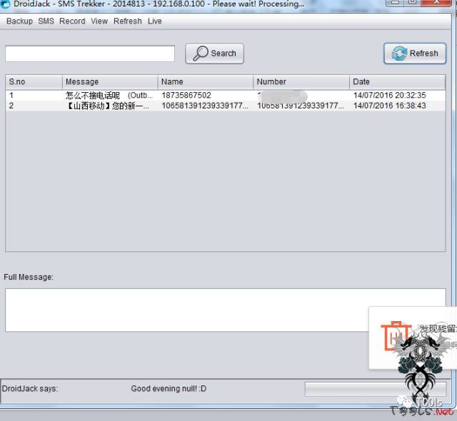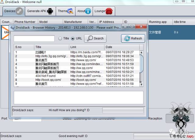 我们同时欺骗成DroidJack木马,使用方法如图: