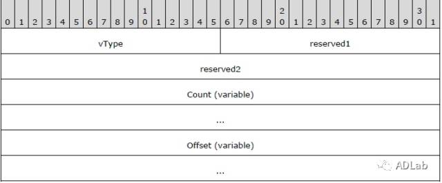 在CPMGetRowsOut消息中,对于每一行(row)中的列(column),column数据使用CTableVariant类表示。CTableVariant结构定义如下。其中Vtype表示数据类型,取值范围见前文Vtype常用数据类型表所示。如果Vtype为字符串等变长数据类型,offset则指向的该变长数据偏移位置。CTableVariant结构存放在valueoffset指定的位置,变长数据则存放在内存末尾位置,在后面解析代码中进行说明。