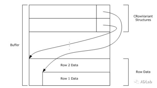 } RowBufferEnd_1c= RowBufferEnd_1c-size; return RowBufferEnd_1c; } 查询结果数据CPMGetRowsOut在内存中的状态如下图所示。可以看出,rows中的变长数据存放在Buffer末尾位置,且以地址递减的方式进行存放。
