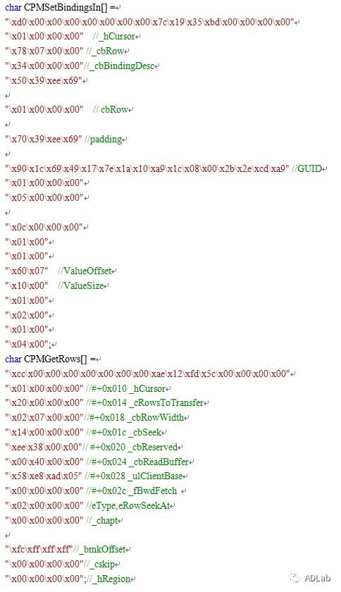int CVIQuery::GetRows(int hCursor, CRowSeekMethod*pCRowSeekmethod, CGetRowsParams*pCGetRowsParams, CRowSeekMethod*pCRowSeekMethod_new) { int result; CItemCursor*pCItemCursor = *(DWORD *)(var_68 + 4*hCursor); CTableCursor*pCTableCursor = pCItemCursor + 0x14; pCTableCursor->ValidateBindings(); //检查pCTableCursor->pCTableColumnSet_4是否为 result = pCRowSeekmethod->GetRows(pCTableCursor, pCItemCursor, pCGetRowsParams, pCRowSeekMethod_new); returnresult; //................. }